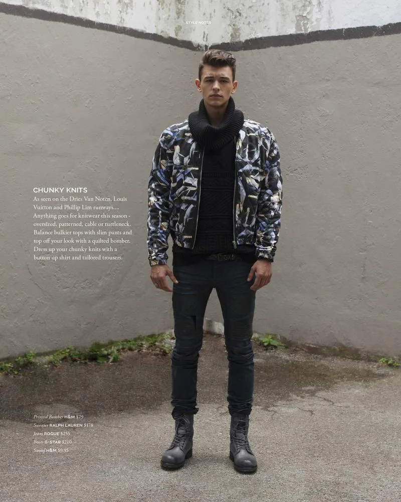 Anything goes for knitwear this season - oversized, patterned, cable or turtleneck. Balance bulkier tops with slim pants and top off your look with a quilted bomber. Dress up your chunky knits with a button up shirt and tailored trousers.